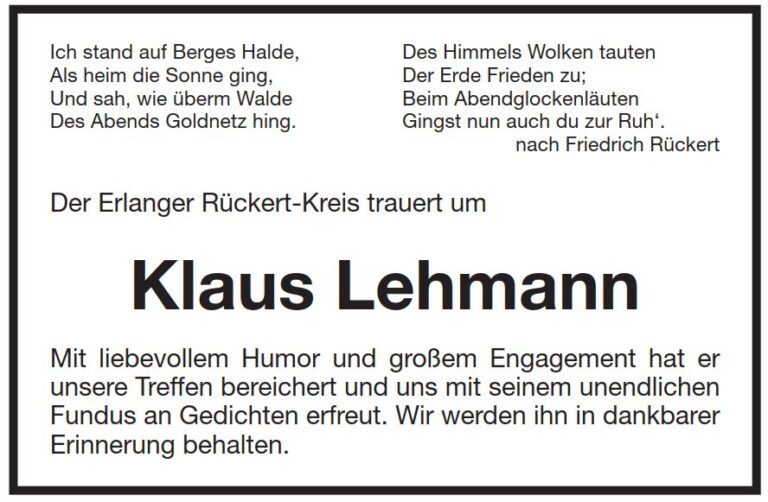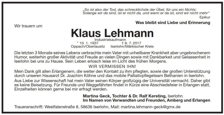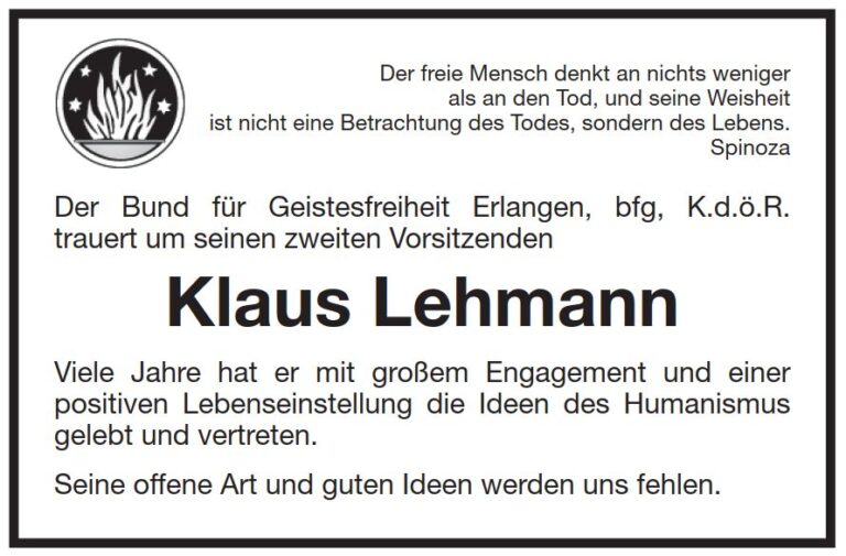 Nachruf des Erlanger bfg-Vorsitzenden Frank Riegler für Klaus Lehmann am 30.7.2017