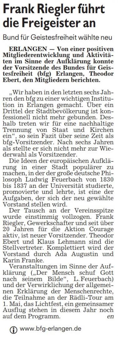 Der Bericht der Erlanger Nachrichten zur Vorstandsneuwahl vom 20. März 2016: