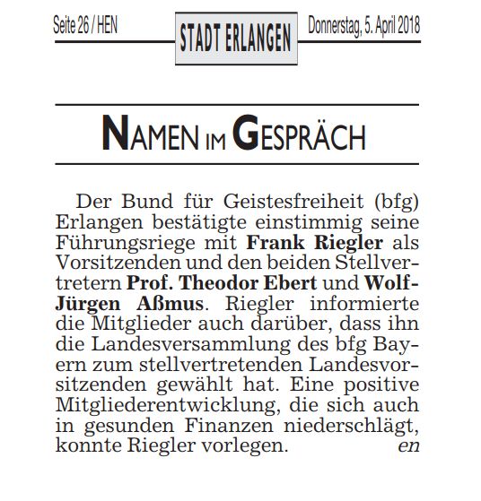 Der Bericht der Erlanger Nachrichten zur Vorstandsneuwahl vom 25. März 2018: