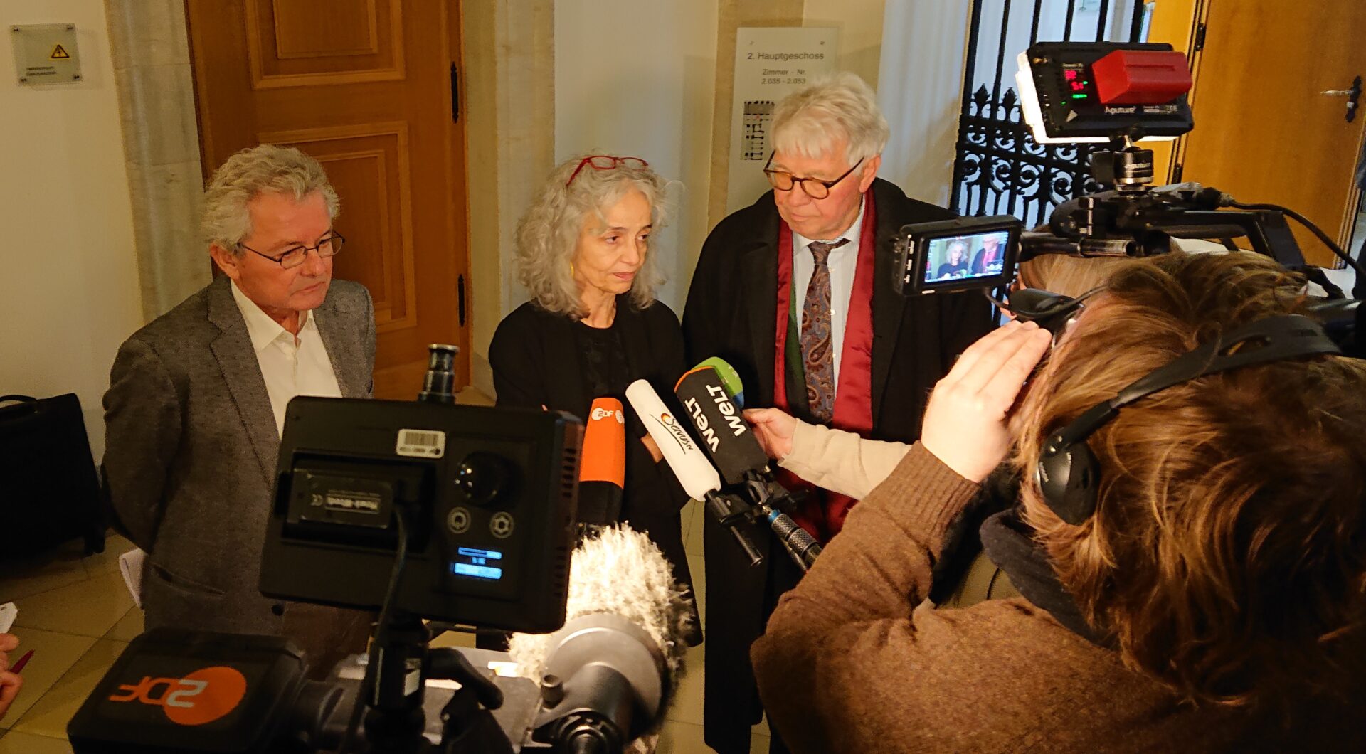 v.l.n.r.: Frank Riegler v. bfg Bayern, Assunta Tammelleo v. bfg München und Anwalt Hubert Heinhold in Sachen Kreuzerlass im Bundesverwaltungsgericht